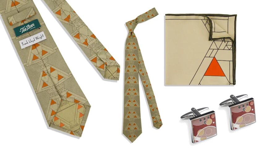 In 2023, the Frank Lloyd Wright Basis expanded its collaboration repertoire to incorporate a colorful sneaker partnership with New Stability and two T-shirts with Kith. Now, the muse is teaming up with the Chicago-based model The Tie Bar on a collection of ties and equipment that encapsulate Wright’s signature model in quite a lot of customized patterns. The collection debuted in late March with costs starting from $18 to $58.
