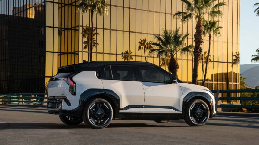 All fashions get a MacPherson strut entrance suspension and a multi-link rear suspension, however the EV3 GT will get a sportier tune. Kia engineers additionally dial in a unique tune for the steering setup. A singular set of 19.0-inch wheels is normal, as are the inexperienced brake caliper covers.