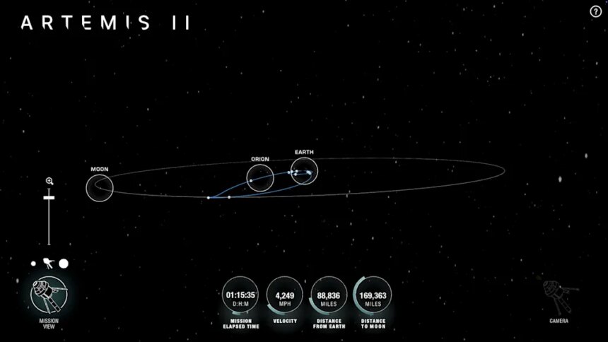 It additionally visualizes the whole path the Orion is scheduled to comply with on its 10-day mission.